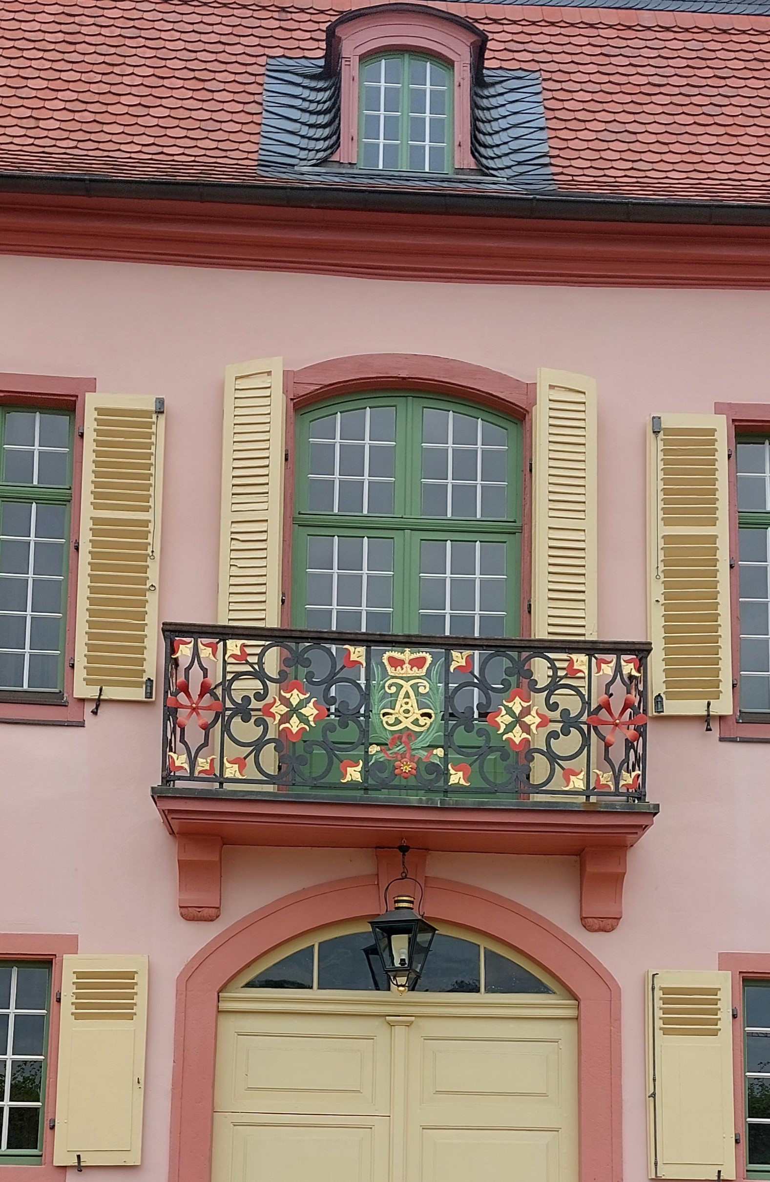Das Gebäude am anderen Ende des weitläufigen Gartens ist mit besonderem Aufwand so bemalt, dass die Fassade von Weitem einen sehr wie eine plastischen Eindruck vermittelt. Hier war zur Landgrafenzeit jedoch schon ein anderes Stück „Schrebergarten“, das einem hohen Offizier des Landgrafen gehörte.