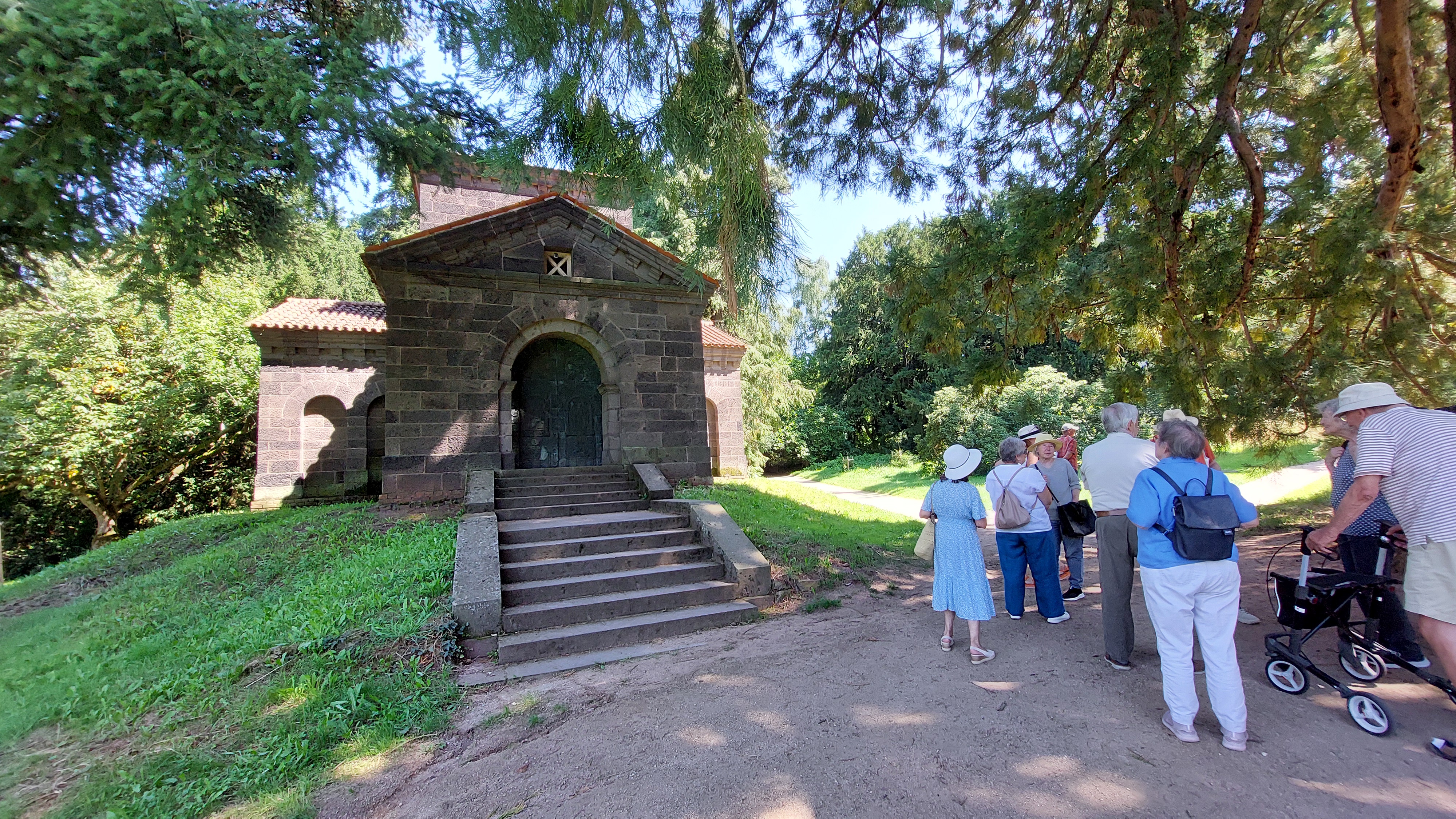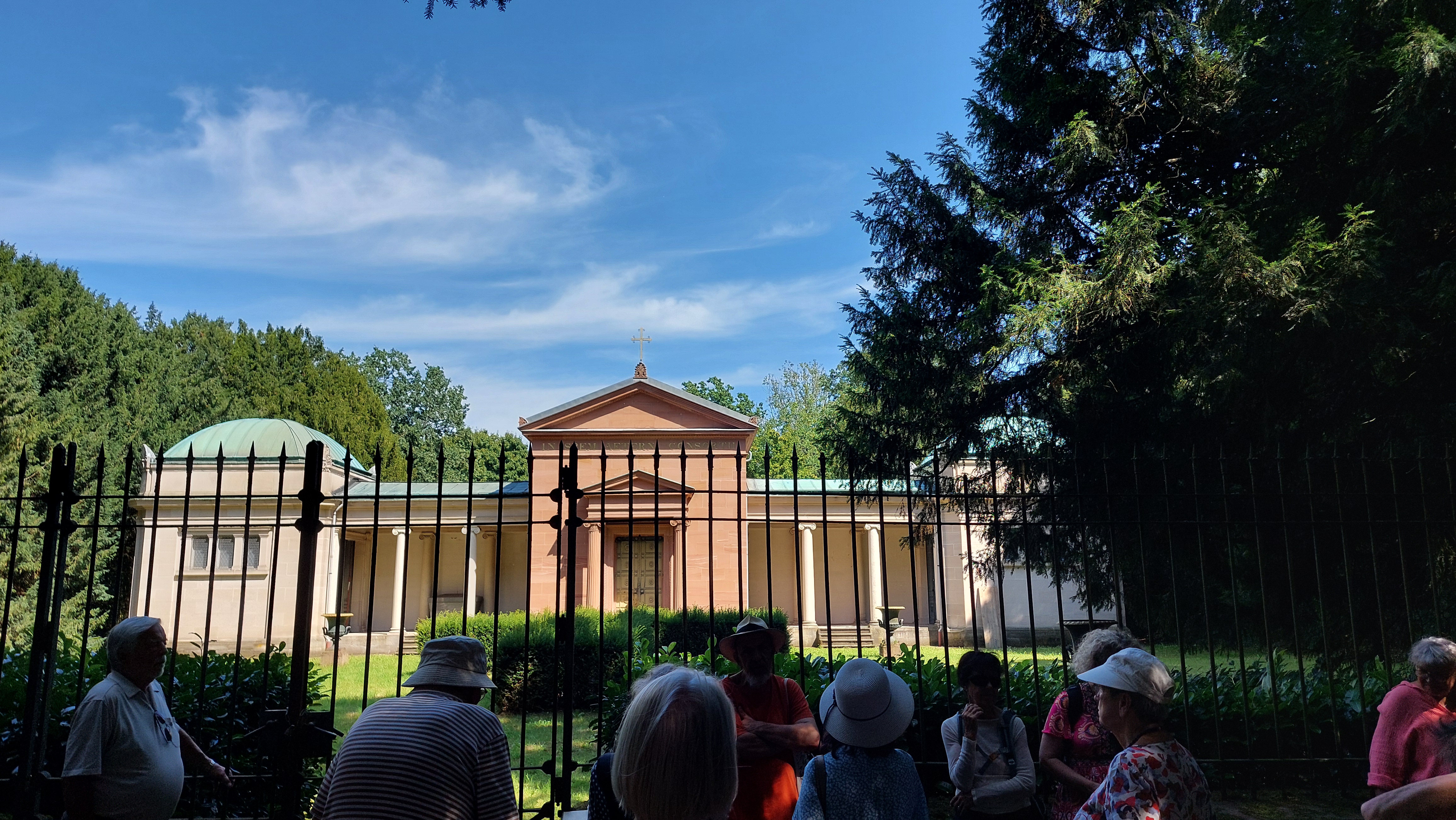 Natürlich haben wir das alte und das neue Mausoleum besucht, die man leider nicht von innen besichtigen kann. Aber die Ruhestätten der Landgrafen sollen leider in einem wenig vorzeigbaren, bedauerlichen Zustand sein. Auch da blieb dann nur die eine oder andere Fotografie. Es ging zu den Außengräbern und wir erfuhren von den traurigen Schicksalen der Fürstenfamilie, als sie auf einem Flug nach England bei schlechter Sicht ums Leben kamen.