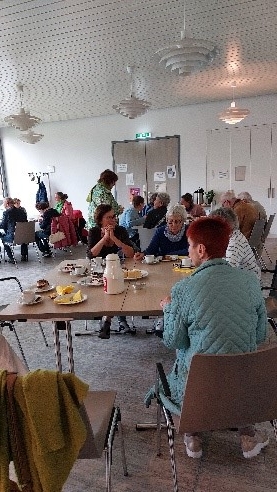 Die angemeldeten Gäste gingen derweil ins benachbarte Gemeindehaus, wo die Gemeindereferentin Judith Weiler alles bereits liebevoll gerichtet hatte. Bei Kaffee oder Tee und leckerem Kuchen plauderten Bekannte und Unbekannte angeregt über das Erlebte und auch das Thema Demenz. Ein gelungener Nachmittag mit zufriedenen Teilnehmenden, die sich beim Abschied für die schönen Stunden bedankten.